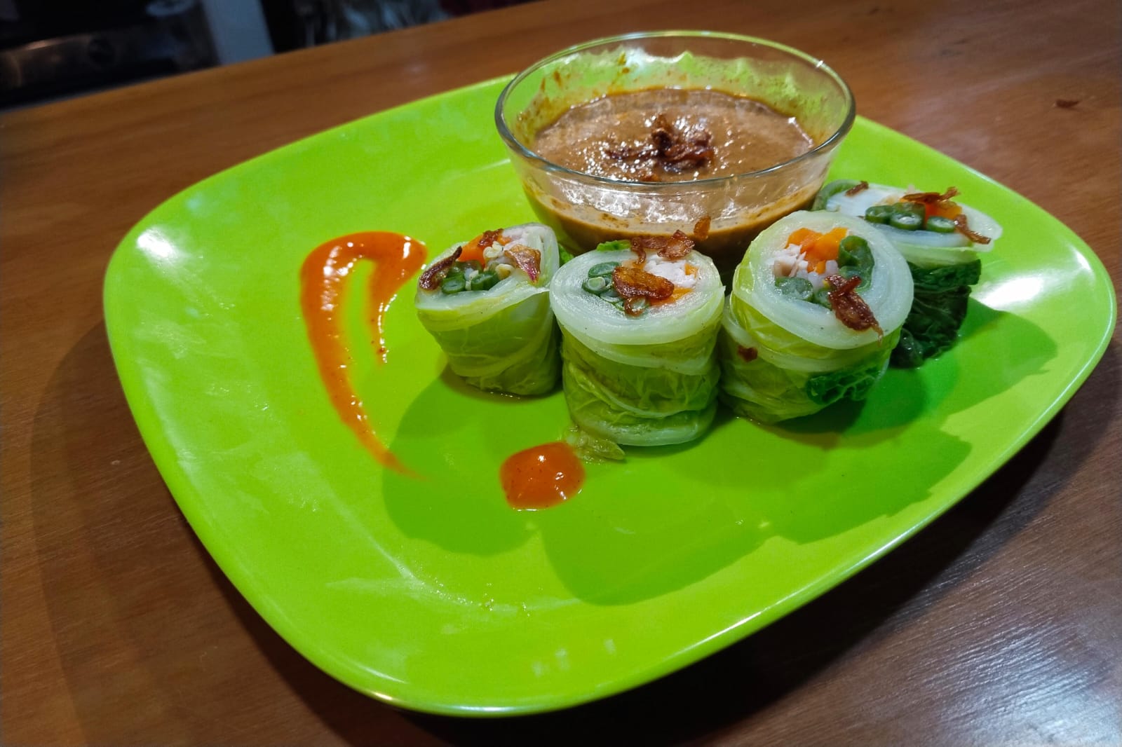 Inovasi gado-gado dalam bentuk gulungan praktis yang berisi berbagai sayuran segar dengan bumbu kacang khas. Menghadirkan rasa tradisional Indonesia dalam sajian yang lebih modern, sehat, dan mudah dinikmati kapan saja.